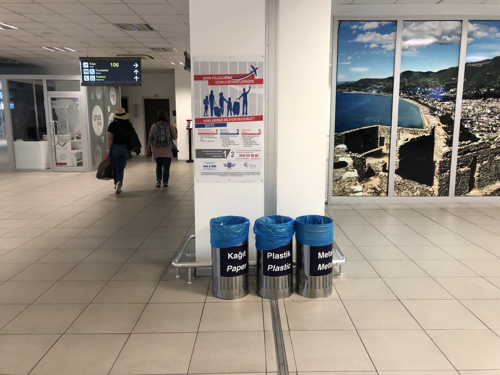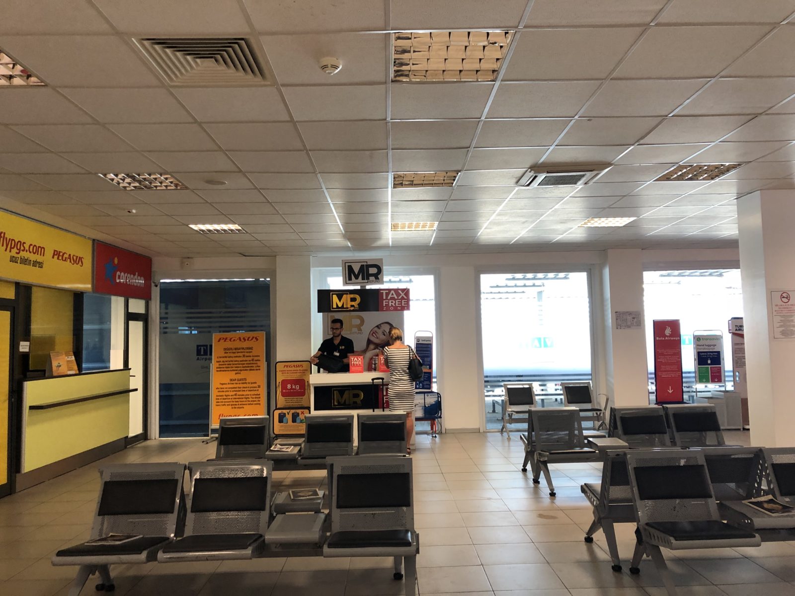 На входе в аэропорт есть пара банкоматов, где можно снять деньги. Скорее всего, будет комиссия, размер которой стоит уточнить у своего банка перед поездкой. DenizBank обычно выдаёт деньги без комиссии владельцам карт «Сбербанка». Akbank точно берёт комиссию, причём конскую. А вот в DenizBank мы снимаем без комиссии от 3000 рублей с карт «Тинькофф банка».