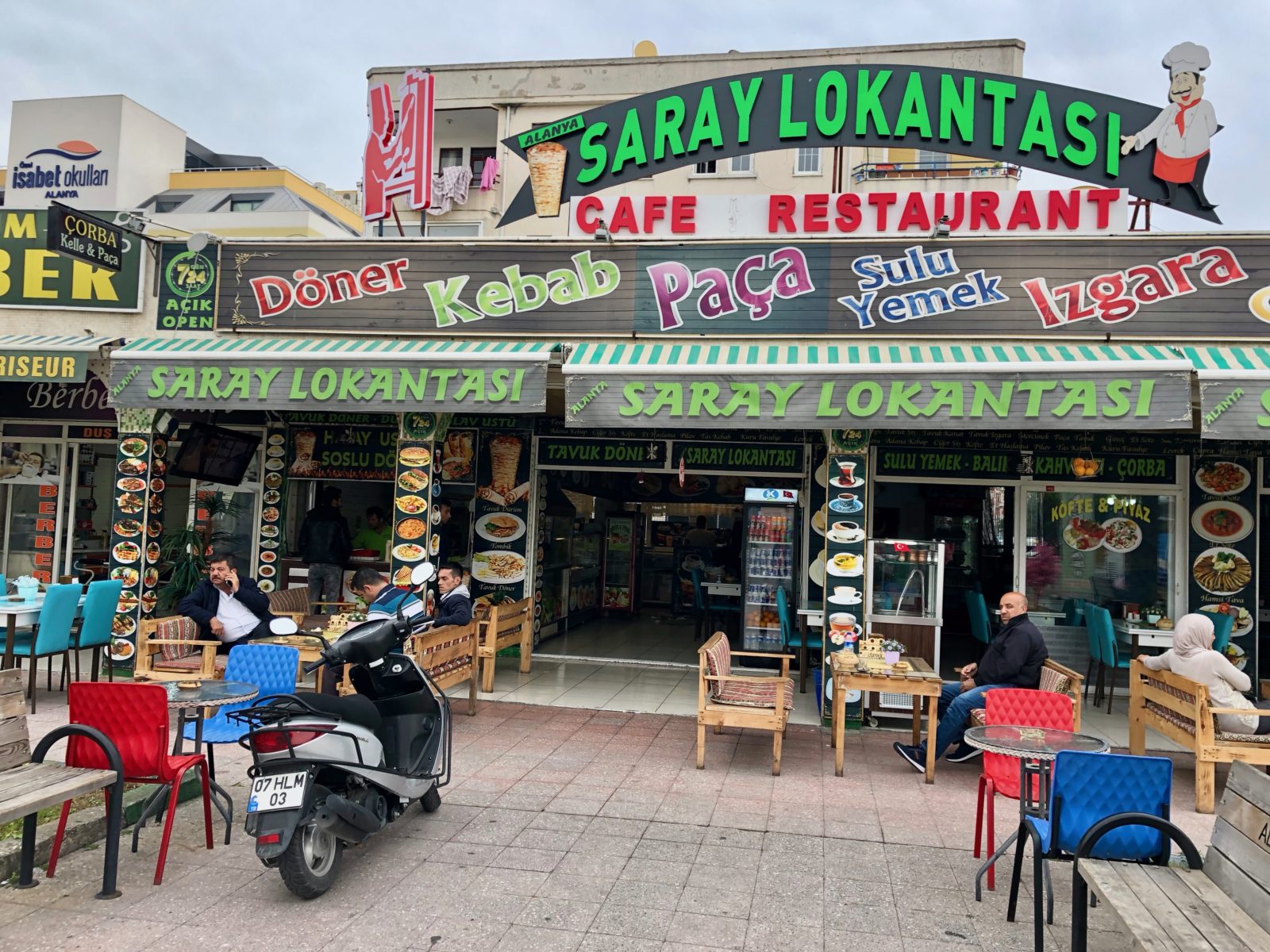 В двух шагах есть несколько банкоматов — рекомендуем AKBANK, в нём можно снимать наличные без комиссии, например, с Тинькова (уточняйте условия снятие наличных у своего банка). ? Прочитайте наш огромный гид: «Деньги в Турции. Какую валюту везти, в каких банкоматах снимать и как сэкономить на конвертации».