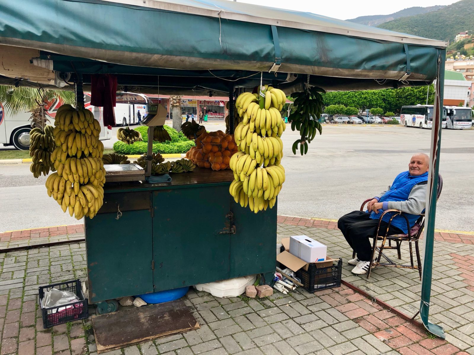 Ожидая отправления автобуса, можно посидеть на скамейке и выпить купленный в лавке чай с турецким бубликом вприкуску. Такой быстрый перекус обойдётся в 4 лиры. Если не успели купить воды или чая — ничего страшного, это бесплатно дадут в автобусе. И даже растворимый кофе.