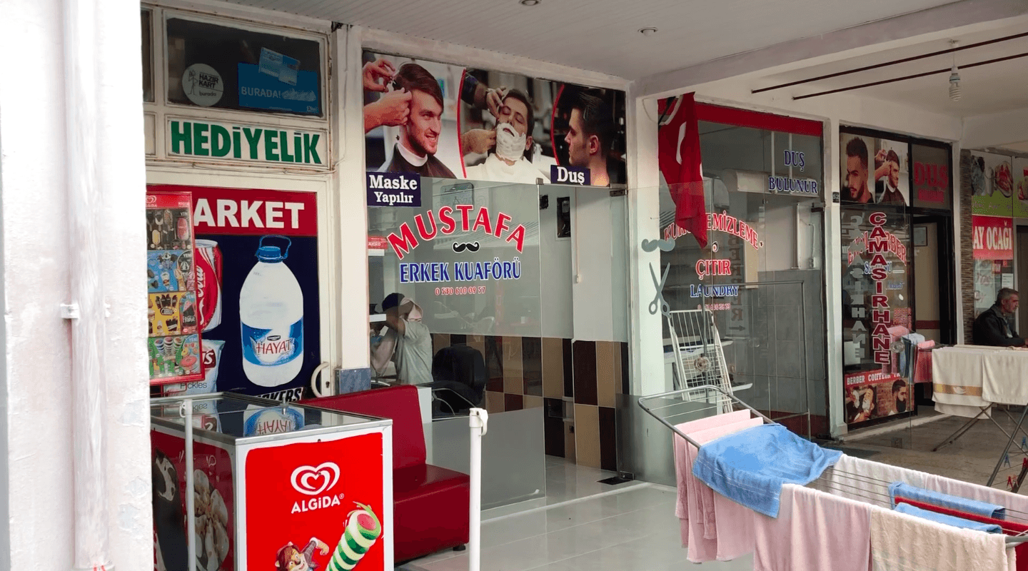 Напротив автовокзала среди кафе затерялась небольшая парикмахерская. Вроде в ней стригут только мужчин, но скорее всего и девушкам могут подровнять волосы. А ещё там можно побрить бороду, сделать укладку и даже маску для лица.